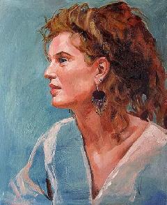 " Flot portræt, med gode afstemte farver. Meget udtryksfuldt, og teknisk godt udført."