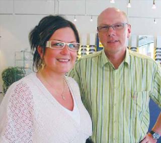 PÃ¥ billedet ses hun med sin nyvundne Swarovski-brille, og ved siden af hende ses indehaveren af Profil Optik i Grenaa, Mogens Pedersen.
