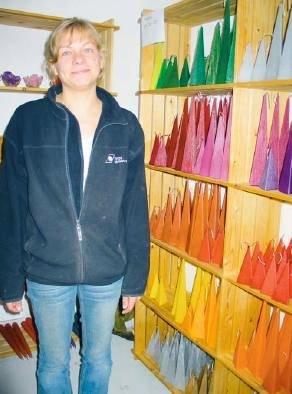 Tine Høgh startede med at lave hjemmelavede stearinlys for cirka 5 år siden, og det er så en interesse, der er vokset og vokset lige siden. Maskinen, der er installeret i staldbygningen, er hentet i Silkeborg, og her fulgte der et pænt stort lager med i købsprisen, så Tine Høgh har faktisk et rigtigt stort udvalg af lys. Der er tale om en rigtig god kvalitet med en lang brænde-tid, fordi hun bruger ungarsk parafin med hærder i - netop for at sikre en lang brænde-tid.