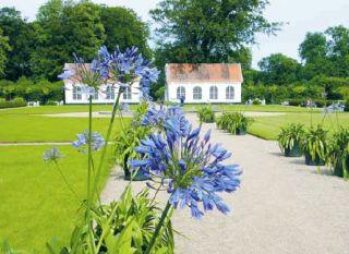 Sommeren igennem står de imponerende staudebede i Gammel Estrups have i fuldt flor og fra parterrehavens græsplæner er der en vidunderlig udsigt til herregårdens røde mure, høje tårne og de to hvidkalkede orangerier fra 1700-årene.