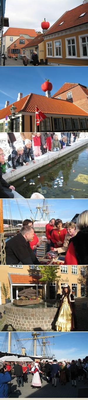 Æbler på tagene, æbler i træerne, en æbleprinsesse med ønskeæbler, små og store æblebåde, Fregatten Jylland i æblemosaik - æblebyen Ebeltoft er fuld af æbler i anledning af den fjerde Ebelfestival, som blev skudt i gang i lørdags.