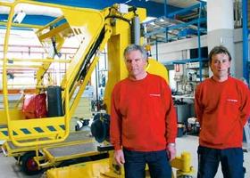 Her ses den nye afdelingsleder i Nordjysk Lift i Grenaa, Gert Steenfeldt, og medarbejderen Lars Ole Back ved en af afdelingens lifte.