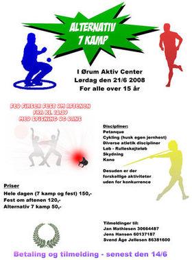 Skulle der være nogen, som har lyst til at teste sig selv i discipliner som kanosejlads, skydning, petanque pÃ¥ græs, løb, cykling og et par atletikdiscipliner, sÃ¥ er chancen der lørdag den 21. juni, 2008, hvor der bliver afholdt ”Alternativ 7-kamp” i Ørum, Stenvad og Ramten.