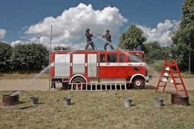 Handlingen i stykket ”Brandbil no. 4” involverer bl.a. en brandchef der er bange for ild, en engel, en underkuet pumpemand og en særdeles selvglad 1. slangemand.