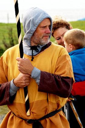 Sagnet ville vide at længe havde den fæle drage, der lurer under Jernhatten spredt skræk og rædsel blandt fæ og folk. Dragen forlangte med trusler om bÃ¥l og brand hver dag at fÃ¥ en ren og skær jomfru, ellers ville den hærge og knuse alt i miles omkreds. Da der kun var en prinsesse tilbage, kom englen Michael til hjælp, og han fandt den tapper Ridder Georg. Ridderen kæmpede mod dragen tre gange. Han brugte sin sandhedskappe, sit sværd og et stykke af en stjerne, og til sidst kunne han stikke sværdet i dragen, sÃ¥ den døde. Siden den dag kaldes alle tapre mennesker "Michaels-riddere", og mandag d. 28. september fik DrÃ¥bitterne fra DrÃ¥by Skovbørnehave kapper og stjernebÃ¥nd pÃ¥ for at hjælpe Ridder Georg og bevise deres værd. Med løftet sværd gik de i kamp mod dragen, men dragen mÃ¥ have anet urÃ¥d, og fra Jernhattens top, sÃ¥ vi den flyve til havs. Men tapre var de DrÃ¥bitterne fra skovbørnehaven i DrÃ¥by, og det varer givet vis meget længe, før vi igen ser en Drage pÃ¥ Jernhatten – mon ikke der mindst gÃ¥r et Ã¥rs tid……!