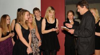 Da det endeligt blev fredag, mødte alle op i deres fineste puds til et brag af en gallafest, hvor der blev uddelt statuetter for de bedste projekter i fem kategorier. De øvrige klasser i overbygningen på Ørum Skole var inviteret med og et elev-band spillede i pausen.