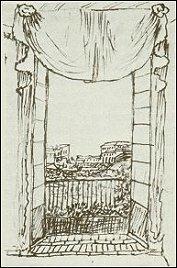 Tegning fra H. C. Andersens hånd "Mit vindue i Rom".