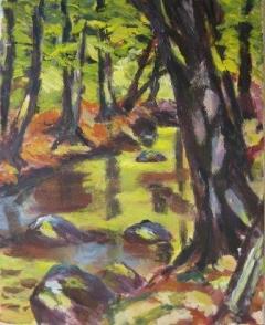 Hendes malerier kan ses på Auning Bibliotek hele oktober måned i bibliotekets åbningstid.