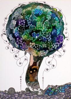 Hanne Tylen udstiller sine detaljerige og farverige tegninger på Hornslet Bibliotek i hele maj måned. Hanne Tylen er autodidakt tegner og har først i en sen alder fået tid og ro til at skabe sine unikke værker. Hanne Tylen planlægger ikke sine tegninger på forhånd, men hun skaber dem intuitivt og tilfældigt i det øjeblik, hun sidder og tegner.