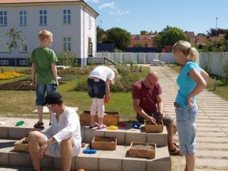 Glasstøbning i sandforme udenfor Glasmuseet i Ebeltoft.