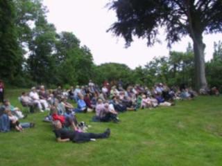 Grundlovsmøde under den store blodbøg i præstegårdshaven.