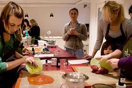 Juleværksteder med bolsjer, sæbe, lipgloss, shampoo, fodbadesalt, bodyscrub og duftlys. I kan lave masser af julegaver og også pakke dem fint ind. Der serveres kaffe, the, saft og lækkert hjemmebag.