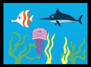 Har du ikke et kæledyr eller er du bare tosset med glubske hajer eller søde fisk ? - Vi klipper og klistrer denne torsdag, så du kan få et akvarie i ramme med hjem og hænge op på væggen. Der kan være lidt ventetid, da der et begrænset antal pladser omkring bordet. Du må gerne tage din mor, far eller bedsteforælder med til at hjælpe med lim og saks. Det er mest for 6 årige og opefter. Der udleveres én ramme pr. barn.