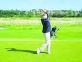 Der blev spillet sponsor-match i Grenaa Golfklub søndag den 22. august. Her svinger Lillian Fast sin golfkølle på hul 4, hvilket gjorde hende til vinder af konkurrencen »Nærmest hul 4«.
