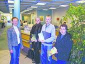 På billedet ses privatrådgiver Ingrid Bager Olsen, der overrækker præmier til (fra venstre) Birthe Kristiansen, Ole Rasmussen og Rita Melin
