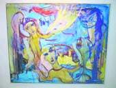 Der er en egen barnlighed i hendes malemåde - en verden af fugle og skikkelser, der kun er antydet, men som alligevel har portrætkarakter - men der er bestemt intet barnligt ved kompositionen. Hun er trods det slørede udtryk en meget sikker billedkunstner, der mestrer både balancen, formen og farven, så hver enkelt lærred danner et fornemt hele.