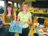 Nikoline Kroer og Agnes Rousing viser her én af de flotte kreationer fra Glashytten.