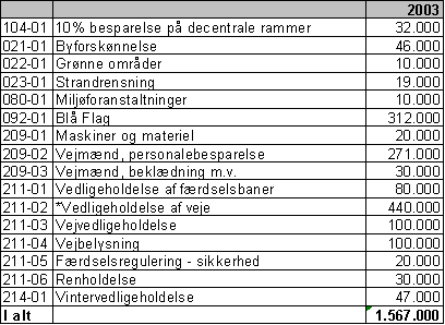 Teknisk budget, drift for 2003 udgør 12.172.044 kr.