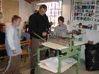 den lokale kunstnergruppe sætter børnene i gang i alle faser fra trykplade til papir.
