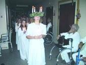 20 piger fra 5. og 6. klasse på Voldby Skole sørgede tirsdag i sidste uge for lidt lys og glæde på sengeafsnittet på Grenaa Sygehus. Pigerne stod nemlig for et Lucia-optog, hvorunder de sang smukke julesange for de indlagte patienter og deres pårørende.