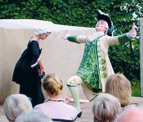 Der er garanti for forviklinger på et højere plan, når Teaterselskabet opfører Holberg-forestillingerne »Kilde-Reysen« og »Den forvandlede Brudgom« på Gammel Estrup. Foto: Berit Guldmann Hornstrup.