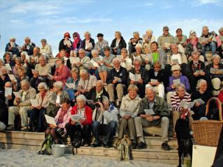 Turistforeningen for Ebeltoft og Mols inviterer hermed turister og lokale beboere til at synge solen ned over Nationalpark Mols Bjerge. Arrangementet afholdes i samarbejde med lokale korsangere, der vil danne klangbund for fællessangene. - Alle aftner indeholder en anekdote, måske en sang eller anden form for underholdende indslag. - Turistforeningen har trykt et lille sanghæfte med dejlige sange fra højskolesangbogen. - Velkommen til herlig fællessang på "Horisonten" i Ebeltoft, - ved havnefronten mellem Glasmuseet og Fiskerihavnen.