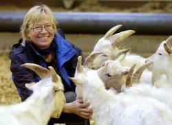 Dorthe Jensen med nogle af husdyrene.