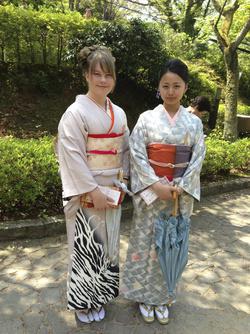 Laura og hendes værtssøster iklædt smukke kimonoer.