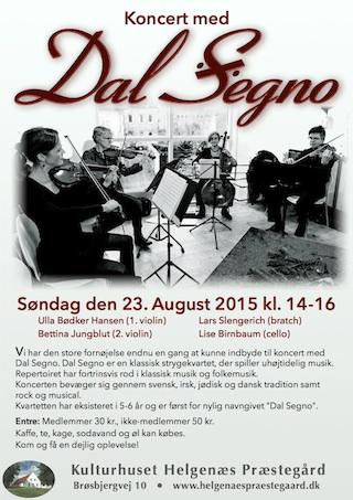 Dal Segno er en klassisk strygekvartet, der spiller uhøjtidelig musik. Repertoiret har fortrinsvis rod i klassisk musik og folkemusik. Koncerten bevæger sig gennem svensk, irsk, jødisk og dansk tradition samt rock og musical. Kvartetten har eksisteret i 5-6 år og er først for nylig navngivet "Dal Segno".