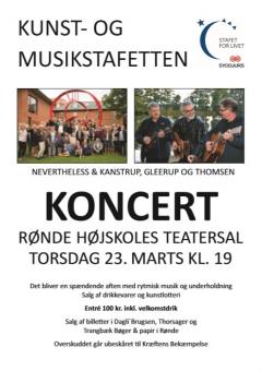 Koncert med Nevertheless, rytmisk kor samt trioen Kanstrup, Gleerup og Thomsen. Der vil også være kunstlotteri. Der er fri entré.