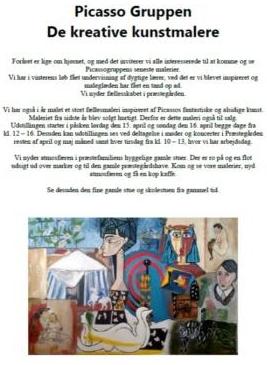05/05 2023 Picasso Gruppen udstiller i Kulturhuset Helgenæs Præstegård søndag d. 16/4 kl. 12-16