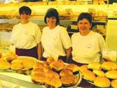 Birgit Jørgensen (yderst til højre) og hendes personale har haft meget travlt siden genåbningen af bageriet og caféen i Lillegade.