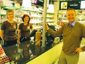 – Indehaveren af Matas i Grenaa, Steen Andersen, ses her i butikkens nye duftafdeling sammen med Matas-medarbejderne Jette Lohse og Birte Prang.