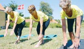 Hver onsdag i tidsrummet fra kl. 9.30 til 10.45 tager ergoterapeut Anne Lykke Pedersen det grønne »rum« med den blå horisont i brug, når hun byder turister, fastboende og forbipasserende på formiddagsgymnastik med enestående udsigt over Ebeltoft Vig.