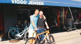Cykelforretningen Viggo Jensen på Strandgade i Grenaa har sponseret en cykel til Team Djurslands nye, tyske håndboldmålmand Benjamin Huss. På billedet får han overrakt cyklen af cykelhandler Steen Jensen.